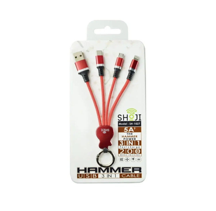 کابل شارژ 1 در3 SH-1027 شوجی ، همه کاره 3IN1 - Micro USB، Lightning، USB-C در طراحی گیتار با طول 20 سانتی متر کمک بزرگی برای شارژ همزمان چندین دستگاه هوشمند است. این کابل از مواد با کیفیت بالا طراحی و تولید شده است تا از انتقال مطمئن و سریع در هنگام شارژ اطمینان حاصل شود.؛مزیت کابل سازگاری آن با تمامی دستگاه های دارای پورت Micro USB، Apple Lightning، USB Type-C (USB-C) است. با استفاده از این کابل می توانید تمامی دستگاه های هوشمند برند اپل، سامسونگ، بلک بری، سونی، هواوی، شیائومی و غیره را شارژ کنید. با نمایشگر ال ای دی تعبیه شده در بدنه گیتار متوجه خواهید شد که عمل شارژ در چه لحظه ای به پایان رسیده است.